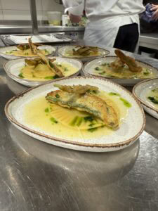 Schon beim Ankommen lag der Duft von frischen Kräutern in der Luft, die Stimmung war entspannt und neugierig. Nach einer kurzen Begrüßung durch das Küchenteam ging es direkt los: Messer wurden gewetzt, Zutaten geschnippelt, Pfannen geschwenkt – und dabei wurde nicht nur gekocht, sondern auch viel gelacht. Die Teilnehmer lernten Tricks aus der Profiküche, bekamen spannende Einblicke in die Zubereitung regionaler Frühlingsgerichte und konnten sich selbst an den verschiedenen Gängen ausprobieren.
