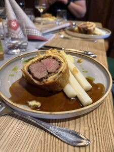 Das Menü? Ein echter Genuss! Vom cremigen Bärlauchsüppchen mit Beef Tatar über selbstgemachten Ravioli, einem Hauptgericht zum Niederknien bis hin zu einem Spargeldessert – jedes Gericht war ein kleines Highlight.